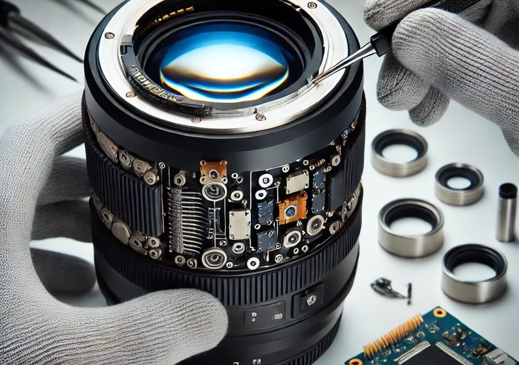 Close-up of hands fixing electronic components with precision tools.